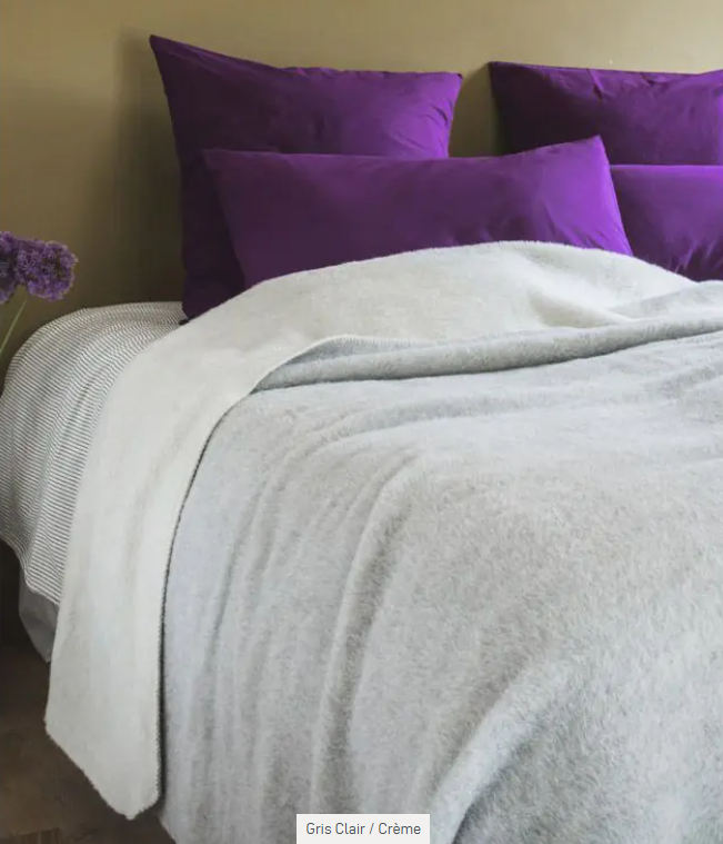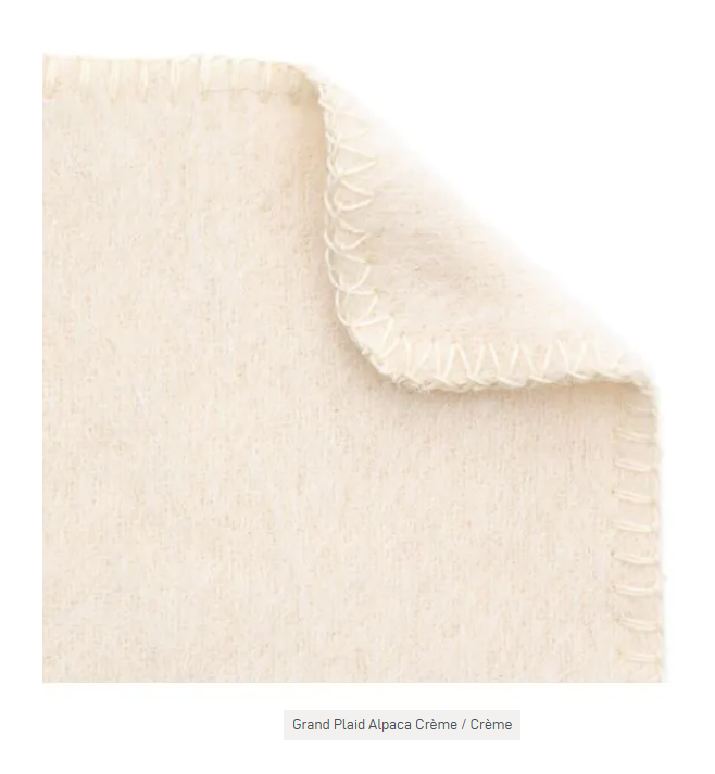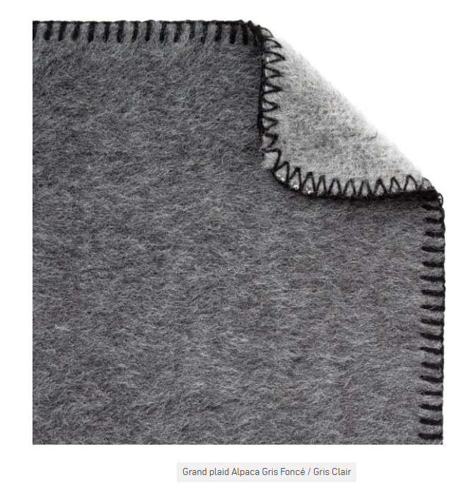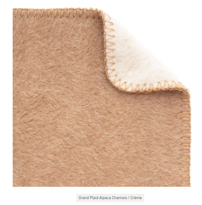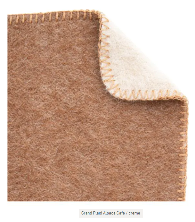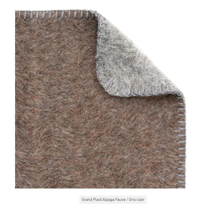 D’aspect tondu en poil noble, le grand plaid en alpaga est enveloppant, il procure une chaleur douillette et une douceur moelleuse au toucher. Tissé en double-face avec des coloris naturels (aucune teinture), il s’apparente à une véritable toison chaude et légère à la fois.