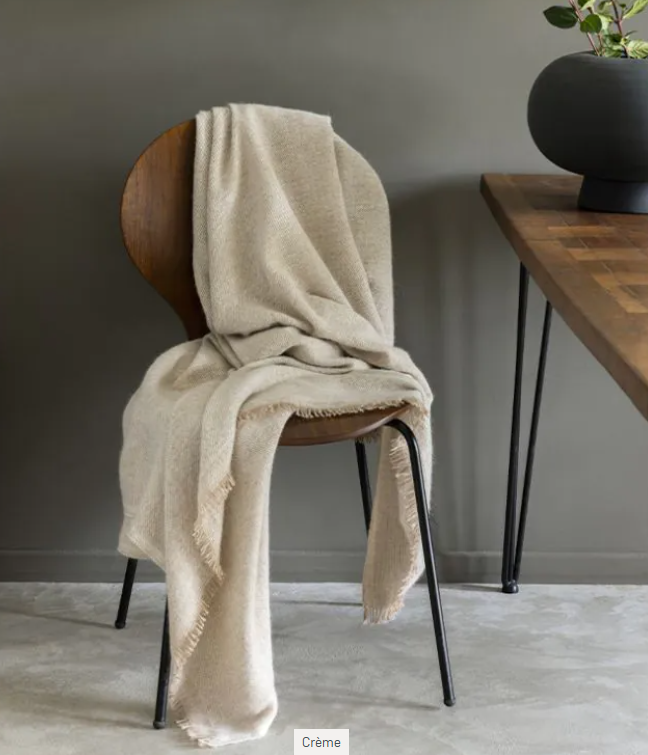 Tout en nuances de tons naturels de Baby Lama, l’une des laines-signatures de Brun de Vian-Tiran : un plaid à la fois sauvage et raffinée, doux et de caractère.